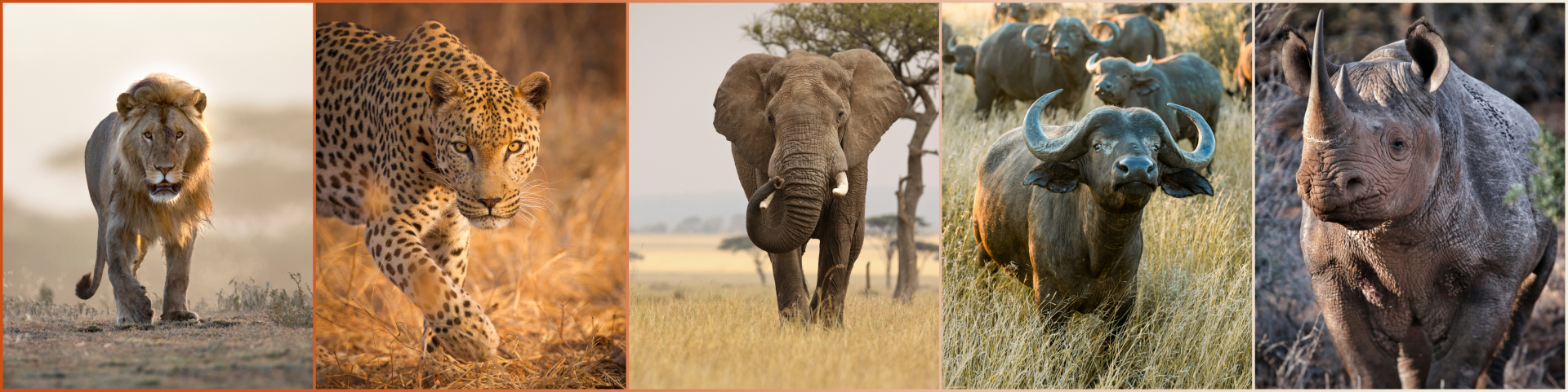 The Big Five - lion, elephant, buffalo, leopard, and rhino - represent Africa’s most iconic wildlife and the ultimate highlight of any safari. Once named by hunters as the most challenging animals to track, they are now celebrated by travelers for their beauty, power, and rarity. From the commanding presence of the lion and the gentle strength of the elephant to the elusive leopard, the formidable buffalo, and the endangered rhino, each encounter is unique and unforgettable. Spotting all five in their natural habitat is a truly special experience and a moment many safari-goers cherish for a lifetime.