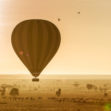 Bei Sonnenaufgang beginnt ein ganz besonderes Safari-Erlebnis: Lautlos steigen Sie im Heißluftballon in den Himmel auf und genießen einen unvergleichlichen Blick über die weiten Landschaften und die erwachende Tierwelt Afrikas. Während der etwa einstündigen Fahrt schweben Sie sanft über Savannen, Flussläufe und Wildtierherden und erleben die Natur aus einer einzigartigen Perspektive. Nach der Landung erwartet Sie ein stilvolles Frühstück inmitten der Wildnis, begleitet von einem prickelnden Getränk. Der perfekte Abschluss eines außergewöhnlichen Morgens und ein unvergesslicher Höhepunkt jeder Safari.