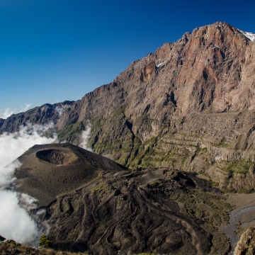 Mount Meru ist der zweithöchste Berg Tansanias mit 4.562 Metern Höhe und liegt im Arusha-Nationalpark, nur wenige Kilometer westlich des Kilimanjaro. Der Berg ist ein erloschener Vulkan mit einer markanten Aschekuppe und bietet atemberaubende Ausblicke auf die umliegende Landschaft, einschließlich des Kilimanjaro in der Ferne.