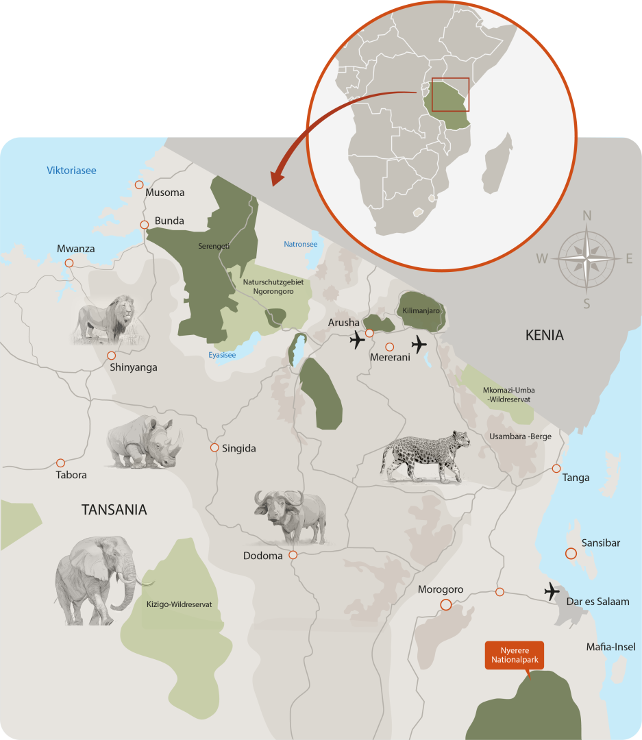 Ganz gleich, ob Sie die spannende Tierwanderung in der Trockenzeit oder die blühende Natur in der Regenzeit bevorzugen – Tansania ist zu jeder Jahreszeit ein Paradies. Wir gestalten Ihre Reise individuell und sorgen dafür, dass Sie ein unvergessliches Abenteuer erleben, mit Sicherheit.
