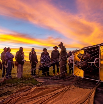 At the launch site, you will meet your pilot, receive a detailed safety briefing, and witness the impressive inflation of the balloon. With the first light of the day – around 06:30 a.m. – the balloon takes off and gently ascends into the sky alongside the rising sun.