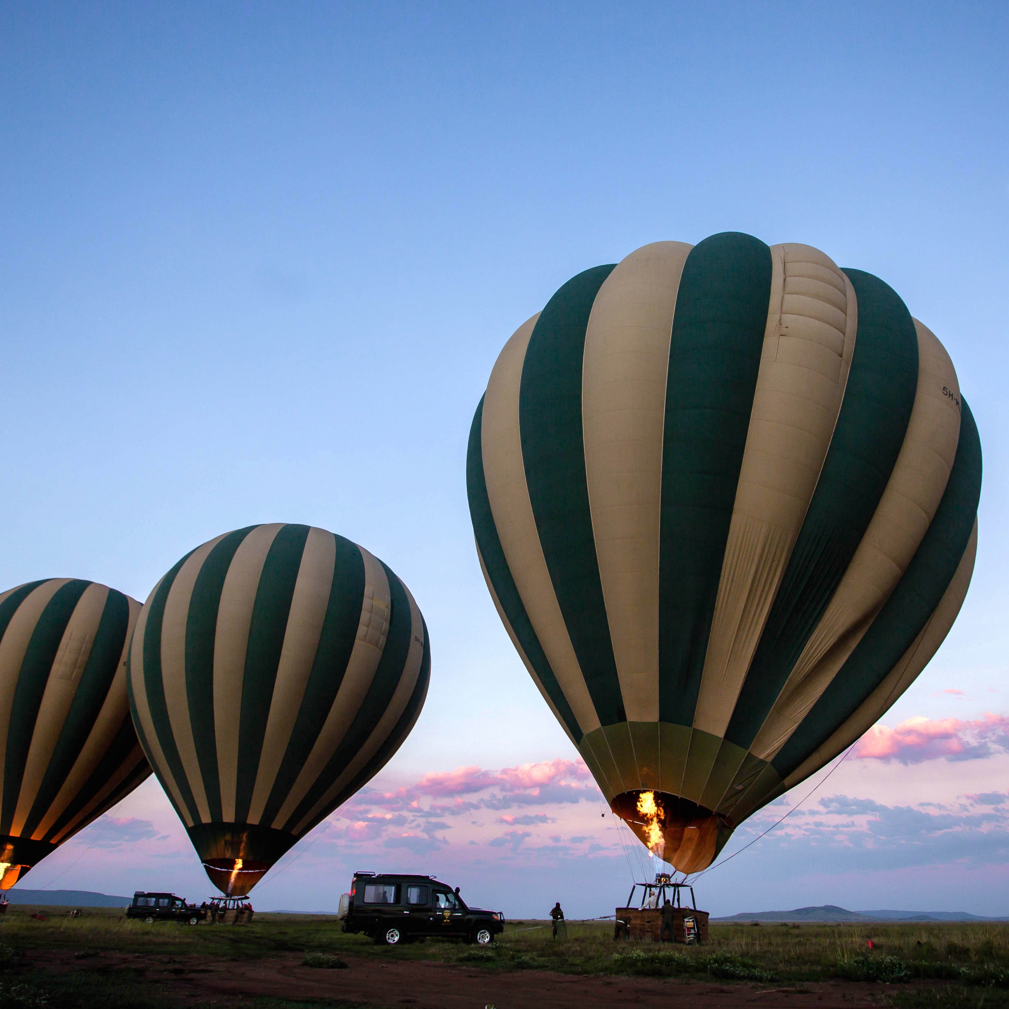 The balloons are made by the best manufacturers in the world, Cameron Balloons of the UK & UltraMagic of Spain. The colour of our balloons are Acacia Green & Savannah Gold to blend in with colours of the Serengeti. The burners are state of the art, chosen for their reliability and minimal noise.