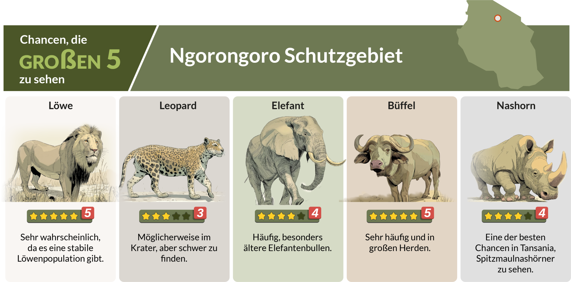 Der Krater ist einer der wenigen Orte, an denen Sie alle Big Five –