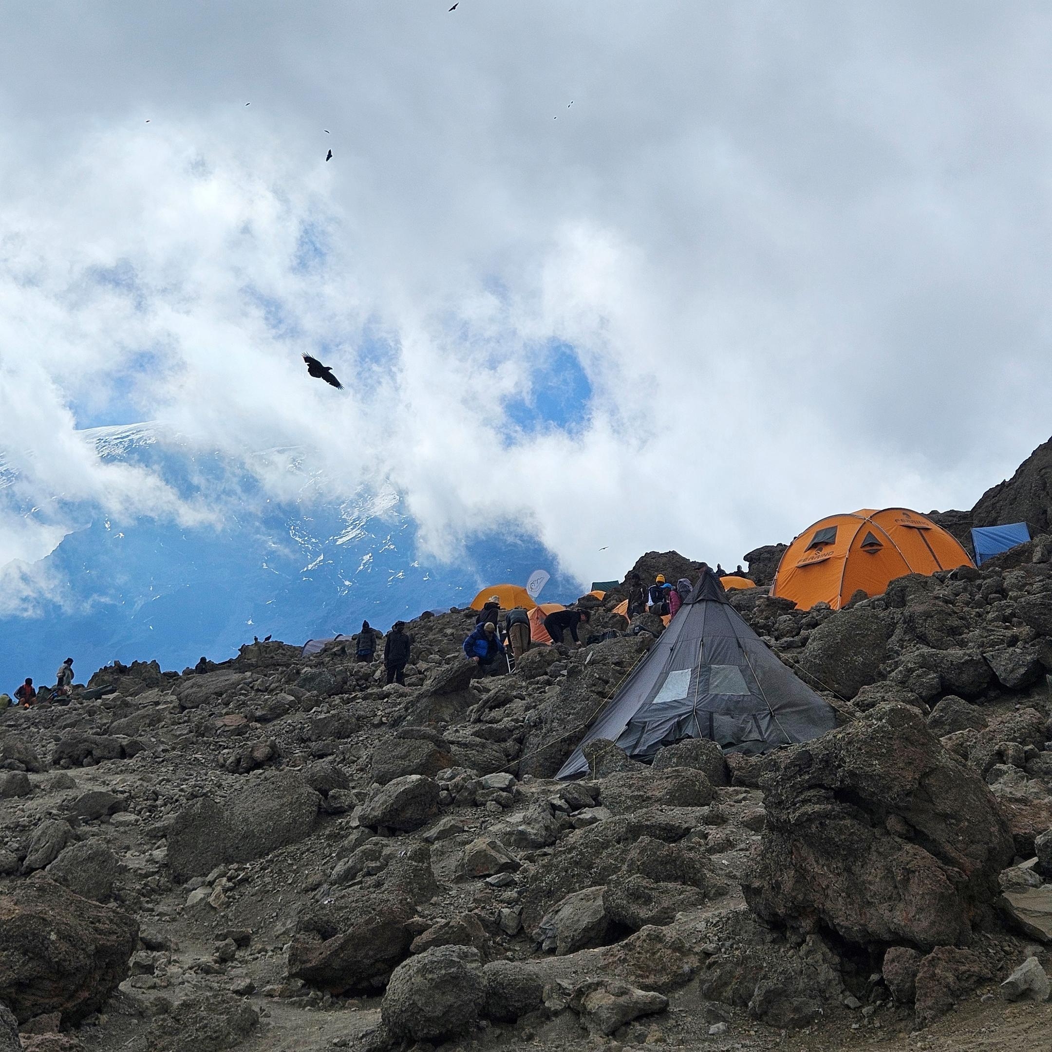 Beschreibung: Der Aufstieg führt durch die karge alpine Wüste. Barafu Camp, das letzte Lager vor dem Gipfel, bietet grandiose Ausblicke auf den Gipfel und die umliegende Landschaft. Hier bereitest du dich auf den nächtlichen Gipfelversuch vor.